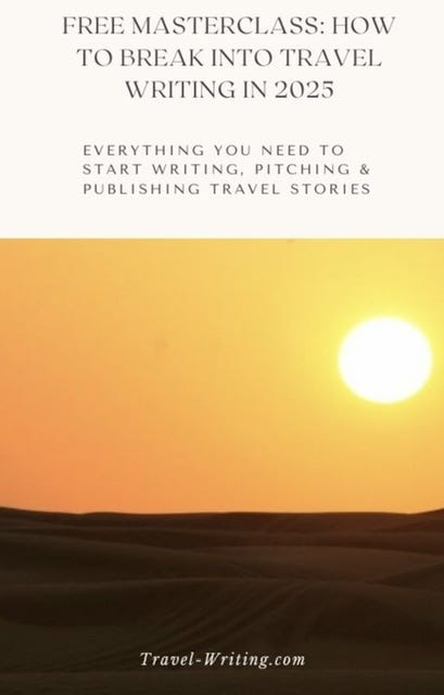 Travel Writer’s Masterclass (an audio introduction - 7 lessons - into the world of travel writing and how to build a portfolio and get pitching)